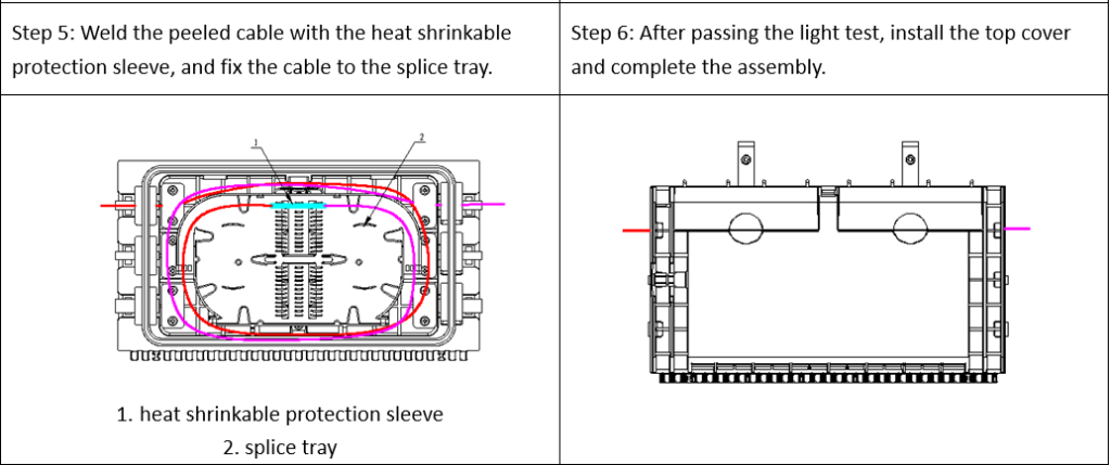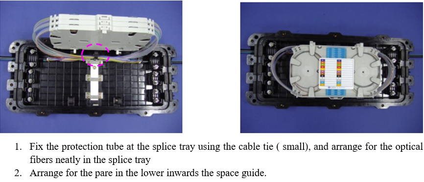 | 1.14 | Khay cassette | Loại khay thường được dùng là loại có thể lưu trữ tối thiểu 12 sợi quang đơn. Chiều dài dư ra của sợi quang ít nhất khoảng 1200mm sẽ được lưu giữ trong khay. Đường kính uốn khoảng từ 60 đến 80mm, đảm bảo sợi quang được giữ không bị ứng suất và tác dụng tới suy hao. Các khay có thể xếp chồng lên nhau |