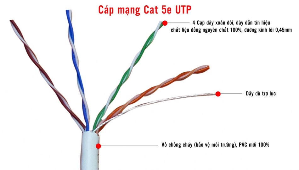 Một cáp mạng LAN bao gồm các thành phần sau: