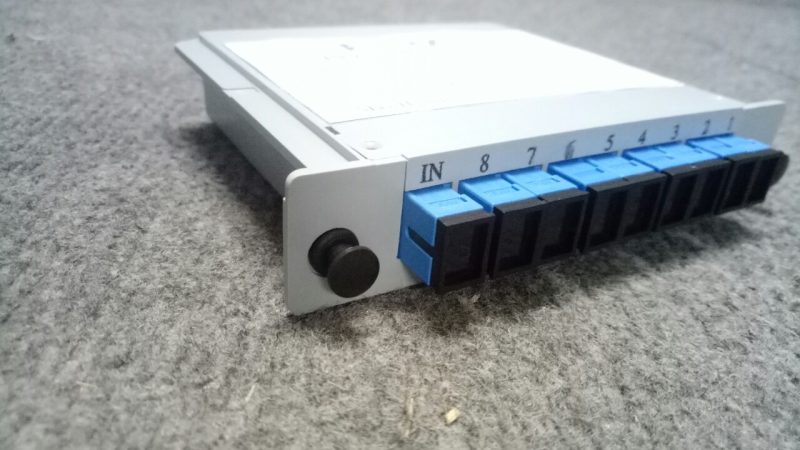 Bộ chia quang Splitter 1 x 8 box casetter SC single mode có kích thước tương đối nhỏ và hoạt động trong bước sóng rộng có tính đồng nhất giữa các kênh. Bộ Optical Splitter PLC 1 x 8 là một thiết bị quan trọng của mạng quang thụ động – PON, sử dụng rộng rãi trong hệ thống cáp mạng CATV, FTTH, FTTB,…