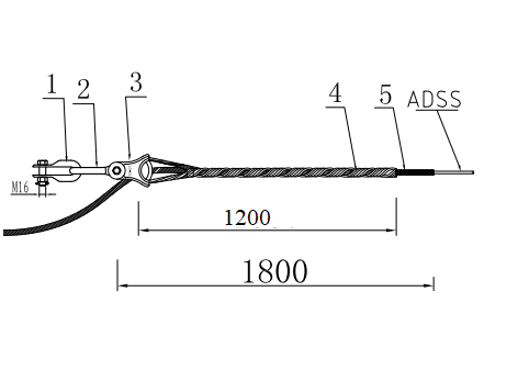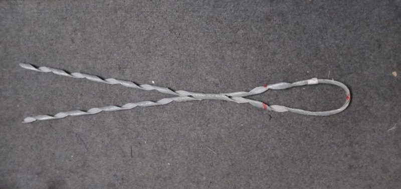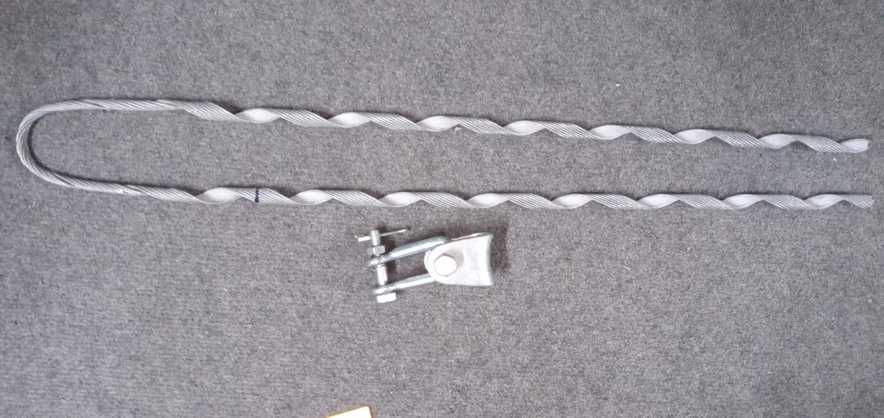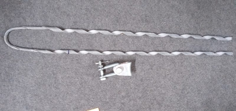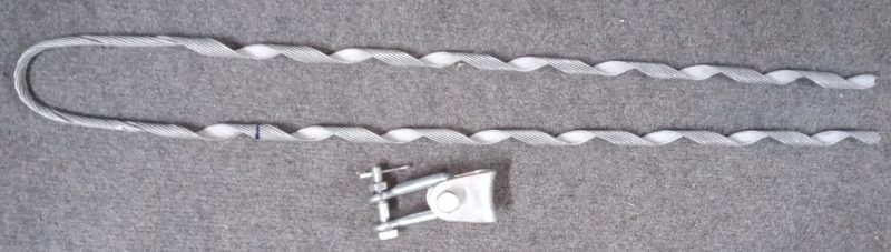 + Chi tiết Dây bện néo cáp: Gồm các dây chịu lực bằng thép cường lực mạ kẽm chống gỉ được bọc kím phía ngoài dây bảo vệ để tăng cường khả năng chịu lực của bộ néo, với chiều dài tổng thể của sợi néo KV100 khi được gấp đôi lại là 800mm, số lượng sợi là 8 sợi, đường kính của mỗi sợi là 2.2mm, các sợi néo được vặn xoắn theo bước sóng ổn định đồng đều, bên trong có phủ thêm lớp cát, các sợi được dính liền sát với nhau, trên sợi néo có dánh dấu vị trí bắt đầu vấn vào cáp ADSS, các sợi vấn đảm báo phủ kín cáp ADSS.