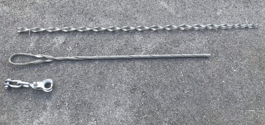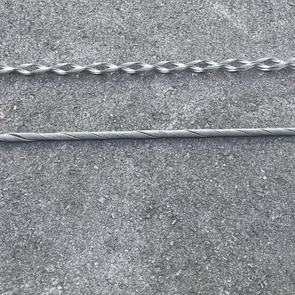 + Chi tiết Dây bện xoắn ( dây xoắn bảo vệ trong- dây lót chịu lực trong) gồm các dây chịu lực bằng thép cường lực mạ kẽm chống gỉ chịu lực đảm bảo phủ kín cáp quang và được phủ cát tăng ma sát, dây lót bảo bảo vệ cáp dùng với bộ néo khoảng vượt từ 500M.