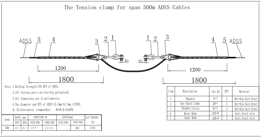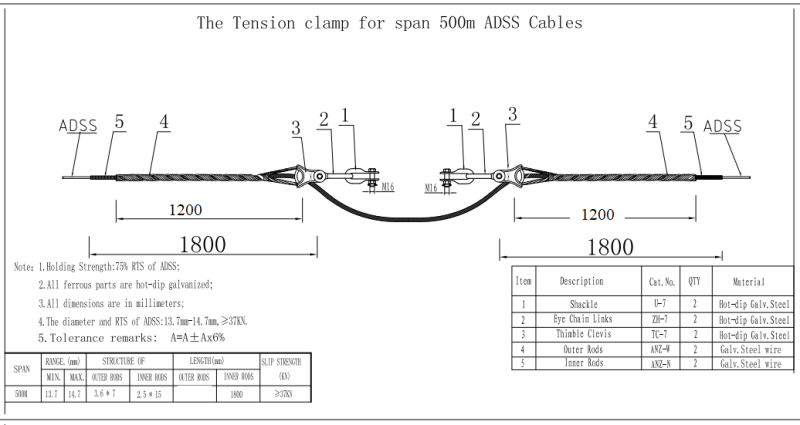 Bộ néo hướng cáp quang ADSS KV500 hay còn gọi là chuỗi néo cáp quang ADSS khoảng vượt 500m, có tác dụng phân phối lực đều trên mặt cáp, tránh lực tập trung do đó tăng khả năng bảo vệ cáp quang ADSS. Khả năng bám dữ cáp quang ADSS của bộ néo không nhỏ hơn 90% lực kéo căng cho phép của cáp, hoàn toàn có thể đáp ứng được cho sự lắp đặt cáp quang ADSS có khoảng vượt nhỏ hơn 500m. Bộ néo KV500 thường được dùng những nơi vượt sông, vượt đường hoặc vượt qua đồi, chịu lực kéo lớn vì khoảng cách xa, nên vì vậy bộ néo KV500 được sử dụng đảm bảo tính ổn định