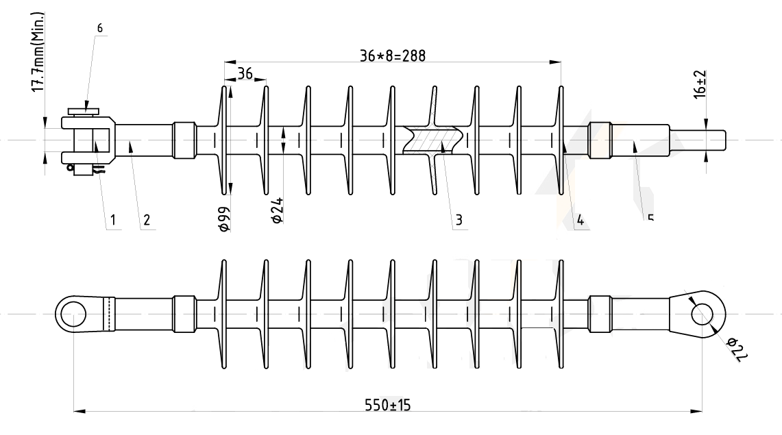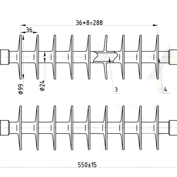 | 2 | Tổng chiều dài cách điện | 550mm |