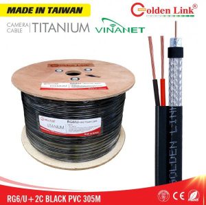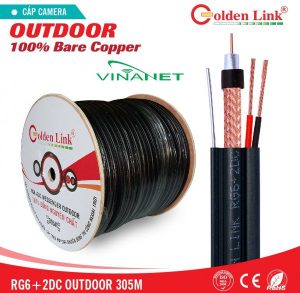 Cáp đồng trục Golden Link RG6/U 75Ohm được sử dụng cho ứng dụng kỹ thuật số, truyền hình cáp, truyền hình vệ tinh VCR, HDTV, CATV và hệ thống camera an ninh. Một lớp lá nhôm chống nhiễu, một lớp sợi nhôm 128 sợi kích thước 0,12mm đan chặt chẽ với nhau, độ phủ 90%, cùng với lớp vỏ PVC sản xuất từ nhựa mới 100%,đảm bảo cho cáp RG6/U sự bảo vệ tốt hơn.
