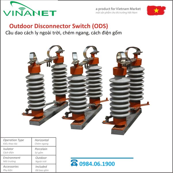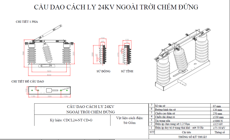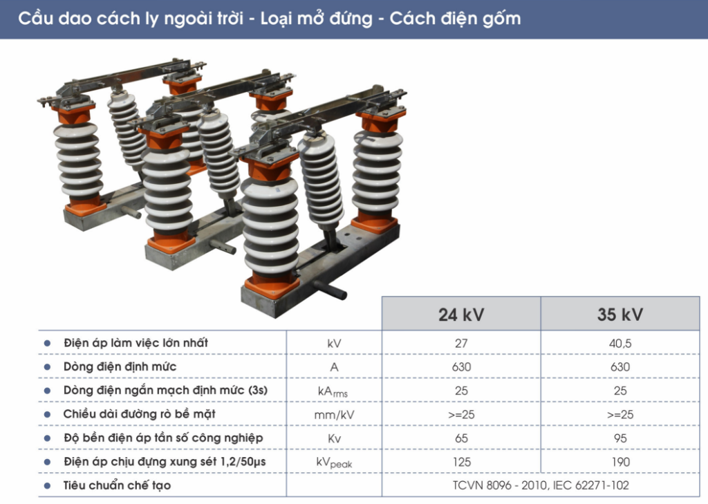 Cầu dao cách ly ngoài trời, chém đứng 24-35kV, cách điện Gốm