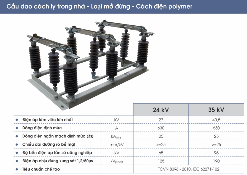 Cầu dao cách ly trong nhà, chém đứng 24-35kV, cách điện polymer