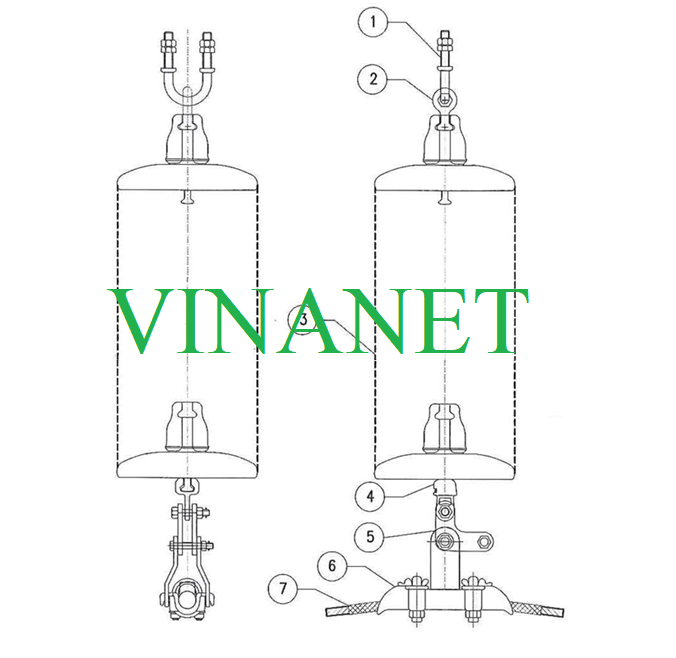 2-Vòng treo đầu tròn: Dùng kết nối Gu dong với Bát cách điện thủy tinh, làm bằng chất liệu thép, mạ nhúng nóng