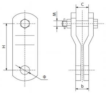 4-Mắt nối đơn: Kết nối Bát thủy tinh cách điẹn và mắt nối thao tác, chịu lực 70kN, làm bằng chất liệu thép, mạ nhúng nóng