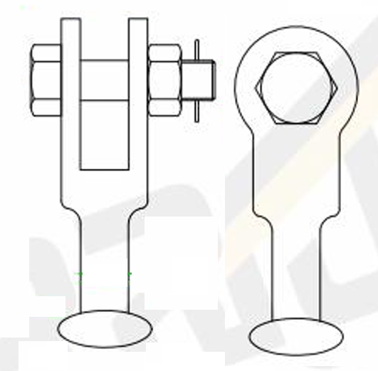 4- Vòng treo đầu tròn 2 chân, chất liệu bằng thép cường lực được mạ kẽm nhúng nóng, có lực kéo >= 120kN, kết nối giữa khánh đơn với bát cách điện thủy tinh