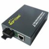 Bộ chuyển đổi quang điện BT-950SM-25A truyền tải dữ liệu trên 1 sợi quang, loại converter quang 1 sợi này phải đẩy 2 bước sóng ánh sáng riêng biệt trong cùng 1 sợi cáp quang. Thông thường bộ chuyển đổi quang điện media converter 1 sợi sử dụng bước sóng Tx1310/Rx1550nm truyền trên cáp quang single mode.Thông số kỹ thuật của Bộ chuyển đổi quang điện B&TON BT-950SM-25A 1 sợi quang single mode10/100M, khoảng cách 25kmHỗ trợ Tự động tương thích 10 / 100M Hỗ trợ giao thức IEEE802.3/IEEE802.3U etc. Loại sợi 1 sợi quang Single mode Kết nối sợi quang Sợi quang single mode ( 25km) Chế độ truyền Single mode, Simplex Giao diện Ethernet RJ45 Giao diện kết nối sợi quang SC Bước sóng quang học Tx1310nm/Rx1550nm Ber < 1/1000000000 Thời gian hoạt động trung bình (MTBF) >5 năm POWER 2.5W Nguồn điện Input : 220VAC/0.5A – Out: 5VDC/1A Nhiệt độ làm việc Bình thường -~50℃ hoặc Công nghiệp -40~85℃ Độ ẩm làm việc 5%-95% Nhiệt độ bảo quản -40℃~70℃ Độ ẩm lưu trữ 5%~95%( Không ngưng tụ) Cân nặng 0.38KG Kích thước 229x122x50mm đóng gói, 94×70.6×26.5mm thiết bị