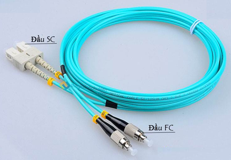 Dây nhảy quang Multimode SC-FC Duplex OM3 vỏ LSZH, chống cháy, có chiều dài từ 1m đến 100M hoặc có thể dài hơn, dây có đường kính 2.0mm hoặc 3.0mm, đầu Connector là SC và LC màu xám, đầu SC là đầu vuông to, còn FC là đầu vặn bằng sắt. Các đầu được bảo vệ chống bụi bằng nút bịt