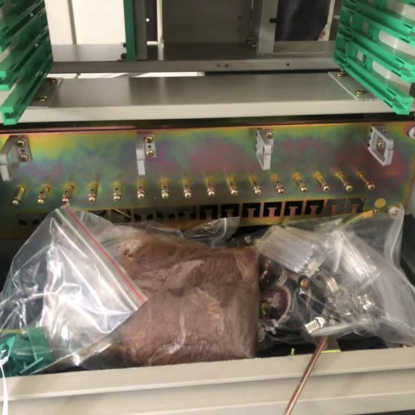 Mặt đăý hộp là nơi cho cáp vào quấn bên dưới, sau lưng tấm pannel là các vị trí lắp ráp cho các mối hàng quang, được sắp xếp và bố trí hợp lý