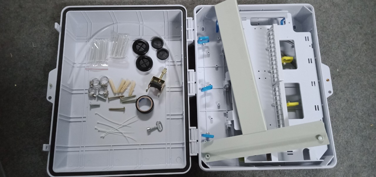 Bên trong hộp có các phụ kiện đi theo hộp, gồm dây rút, vít, ống co nhiệt, núm cao su chống nước, tất cả đều được dựng vào một túi chung. Viền cánh có gioăng cao su được gắn chìm trong hộp, chống nước chống bụi từ bên ngoài xâm nhập