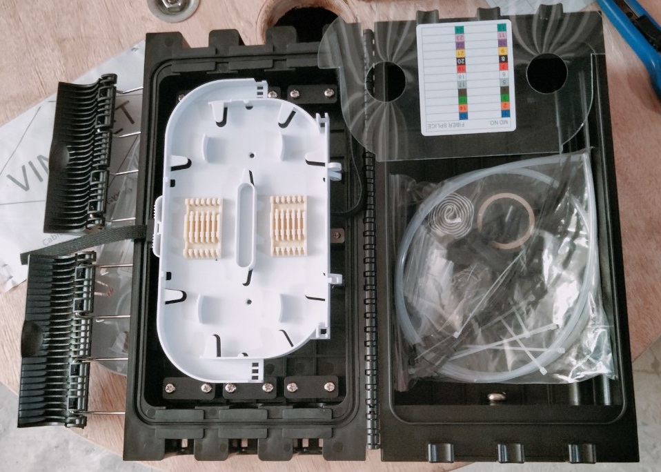 | 1.3 | Yêu cầu về dung lượng | Tối thiểu 12 đến 96 mối hàn. Có thể bố trí được tối thiểu 2 khay chứa mối nối với dung lượng mỗi khay là 12 mối hàn nối. Đầu vào cáp quang: ≥4 đầu vào cáp quang ở 2 đầu măng sông với đường kính cáp quang trong phạm vi tối thiểu: 11 ÷25mm |