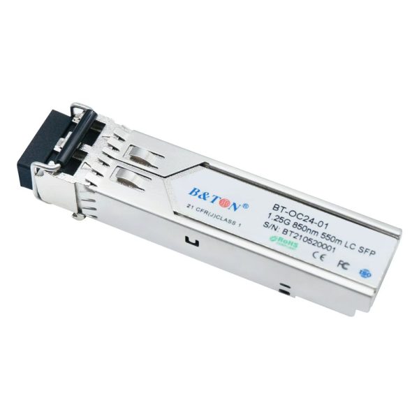 Module multimode 1.25G-LC duplex-550M-850nm – mã BT-OC24-01 cho loại Module quang SFP loại 2 sợi LC Multi mode 1.25G có dung lượng 1.25G khoảng cách-550M- bước sóng 850nm, hãng BTON, xuất xứ china, thường dùng cho các thiết bị switch, convector cổng SFP, thuận tiện cho việc nâng cấp và bảo dưỡng thay thế. Tích hợp được nhiều thiết bị như: BTON, Cisco, Juniper, huawai, Gnet, Planet, Ruijie…. Hàng có sẵn, full chứng từ: CO, CQ, ISO, vận đơn, tờ khai, VAT,..