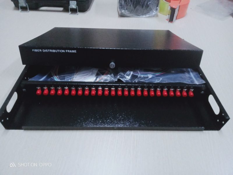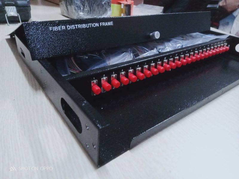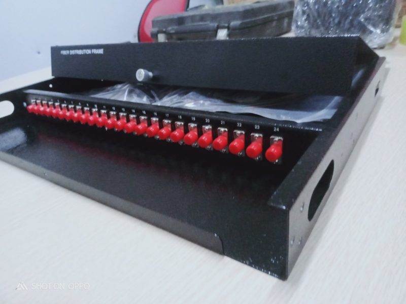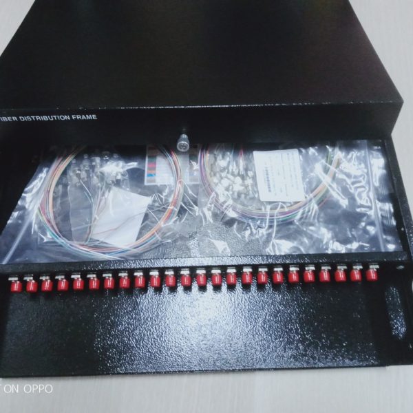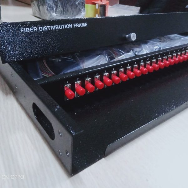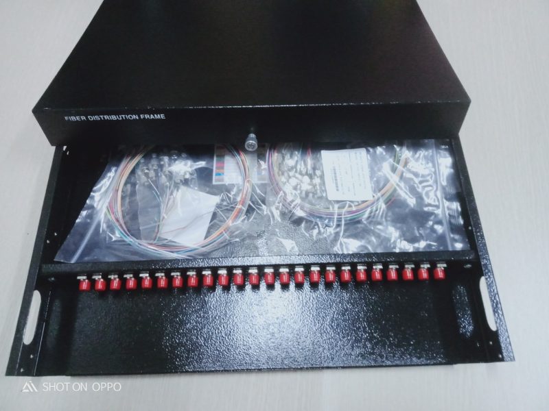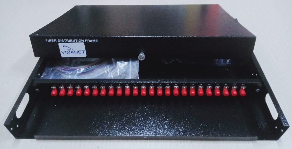 ODF 24FO chuẩn FC gắn rack 1U-19″ Dùng để phân phối sợi quang tại nhà trạm. Từ ODF kết nối sợi quang với thiết bị qua dây nhảy quang ( patch cord). Phù hợp với nhiều loại khay chứa mối nối, đầu nối quang khác nhau. Cung cáp đầy đủ và đồng bộ Adapter, Dây nối Pigtail, ống co nhiệt, khay chứa mối nối hàn quang và phụ kiện lắp đặt theo dung lượng sợi. Thiết kế cho các ứng dụng lắp đặt trong nhà trạm, phù hợp lắp đặt trên khung giá theo chuẩn 1U -19’’, cho phép tối đa đến 4 cổng cáp vào. Dung lượng lựa chọn cho 48 sợi quang và đầu giao tiếp connector quang. Panel gắn adapter giao tiếp quang phía trước và ngăn chứa mối nối hàn quang nằm kín bên trong phù hợp giao tiếp connector quang: FC single mode, đơn, Các đầu adapter được bảo vệ bằng nút bịt bảo vệ chống bụi. Vỏ ODF với chất liệu thép cold-rol, vỏ bằng sắt khép kín được phủ một lớp sơn tĩnh điện chống gỉ màu trắng.