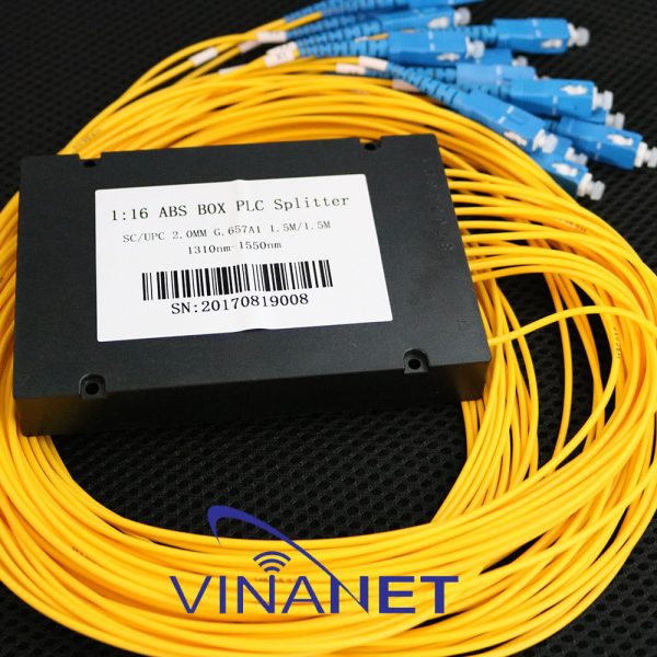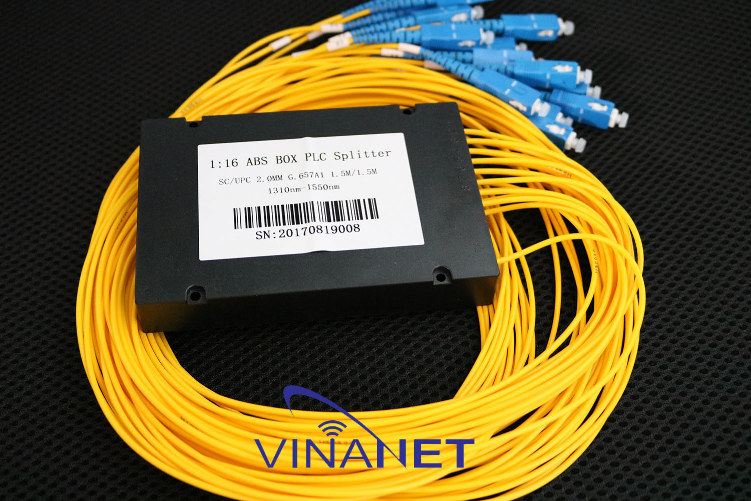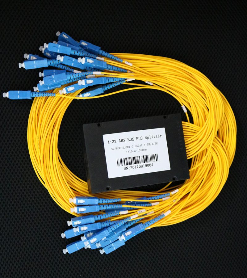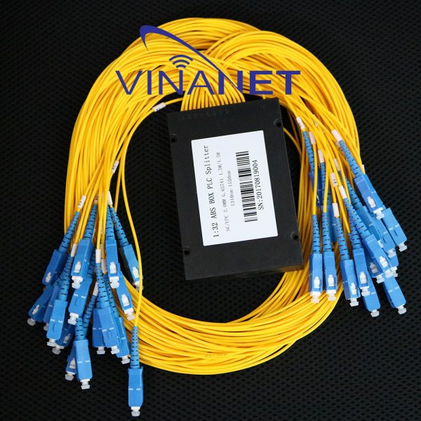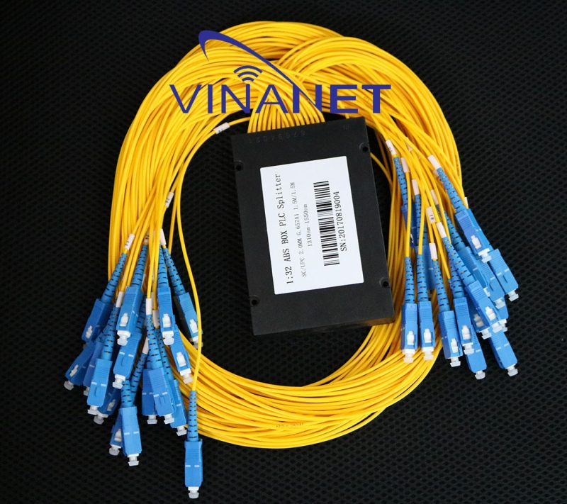 Bộ chia PLC ABS 1×32 SC/UPC chuẩn dây 2.0mm màu vàng, chiều dài input-Output: 1.5M được dùng nhiều trong Măng xông quang, hộp tập điểm quang. Kết cấu vỏ nhựa bảo vệ PLC bên trong chắc chắn, kích thước vỏ bảo vệ PLC ABS là 100x100x20mm. Vỏ PLC ABS được làm bằng chất liệu nhựa ABS, tiêu chuẩn chống va đập chống được các tác động từ bên ngoài. Độ duy hao thấp, ổn định cao.Hộp kết cấu cổng vào ra cho dây quang được rõ ràng dễ dàng sử dụng và nhận dạng. Bộ chia quang ABS với dây input và output với đường kính 2.0mm, 3.0mm chiều dài từ 1m đến 1.5m, với chiều dài đủ dài cho người sử dụng dễ dàng thao tác và lắp ráp vào trong hộp. Đường kính cáp vừa phải đảm bảo đủ diện tích cho hệ thống đi dây bên trong ODF, măng xông và tập điểm quang. Chất liệu dây bằng PVC hoặc LZSH tùy thuộc vào yêu cầu của người sử dụng.