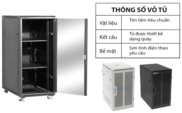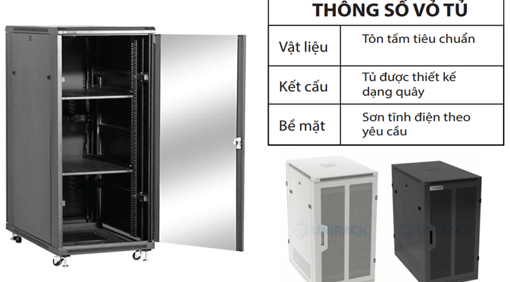 – Phụ kiện đi theo tủ: Quạt tản nhiệt, 04 cây thanh Hold, 02 bộ hông tủ, 01 bộ bánh xe, 02 bộ chân đế, Bộ ốc cài